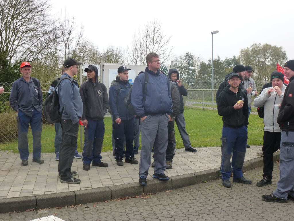 Die Beschäftigten folgten dem Aufruf der IG Metall, legten die Arbeit nieder und versammelten sich vor dem Betriebstor zur Kundgebung.